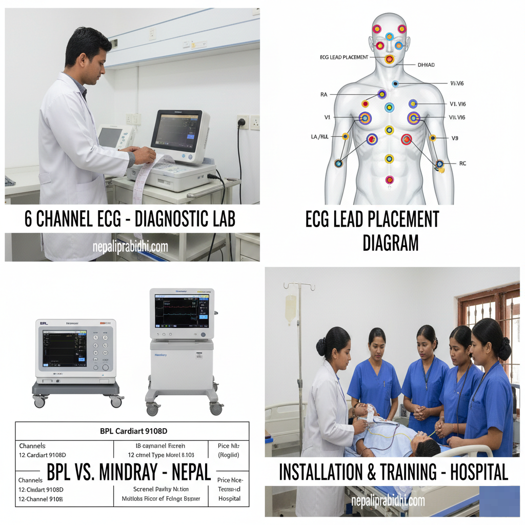 Everything you need: 3-channel, 6-channel & 12-channel ECG machines, top brands, updated price list, buying checklist, installation, AMC & why Nepali Prabidhi is Nepal’s #1 trusted supplier.